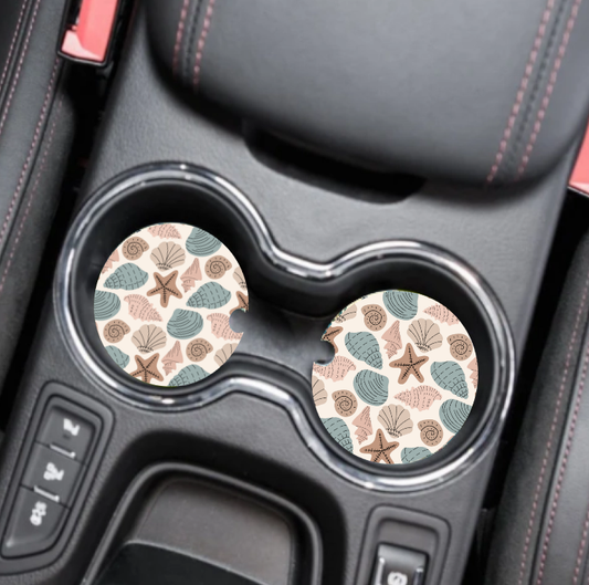 Vintage Sea Shells Beach Car Coaster Set