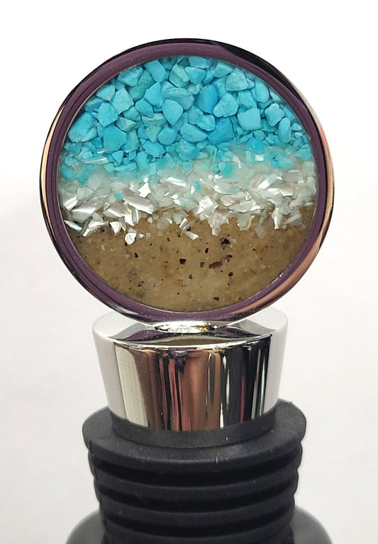 Dune Jewelry -Round Wine Stopper - Ocean Gradient, Made with sand from The Beaches of Cape Cod