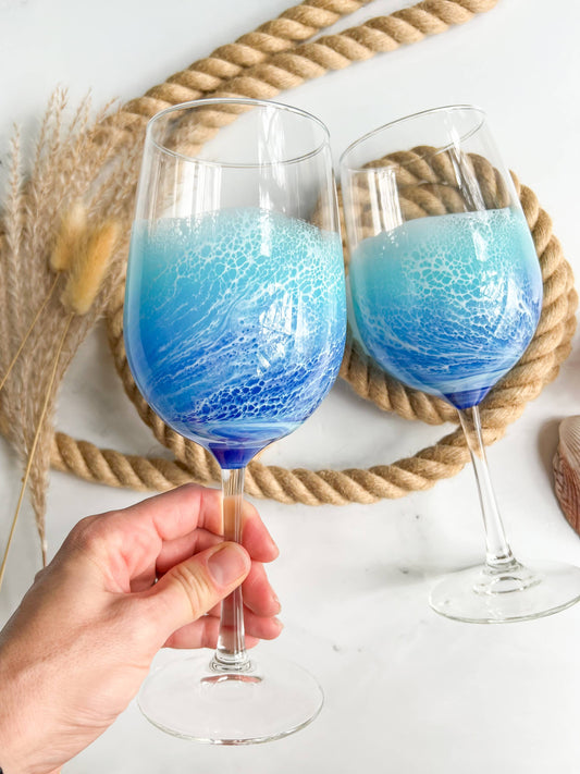 Citrus Waves Art - Ocean Waves Wine Glasses