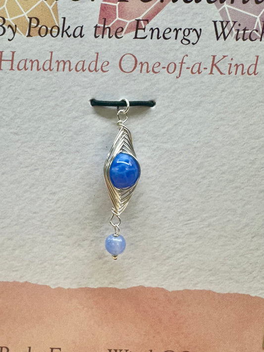 Pooka the Energy Witch - Wire Wrap Pendant - Blue Fire Agate - Sterling Silver Wire Wrap #2 - Gemini, Pisces