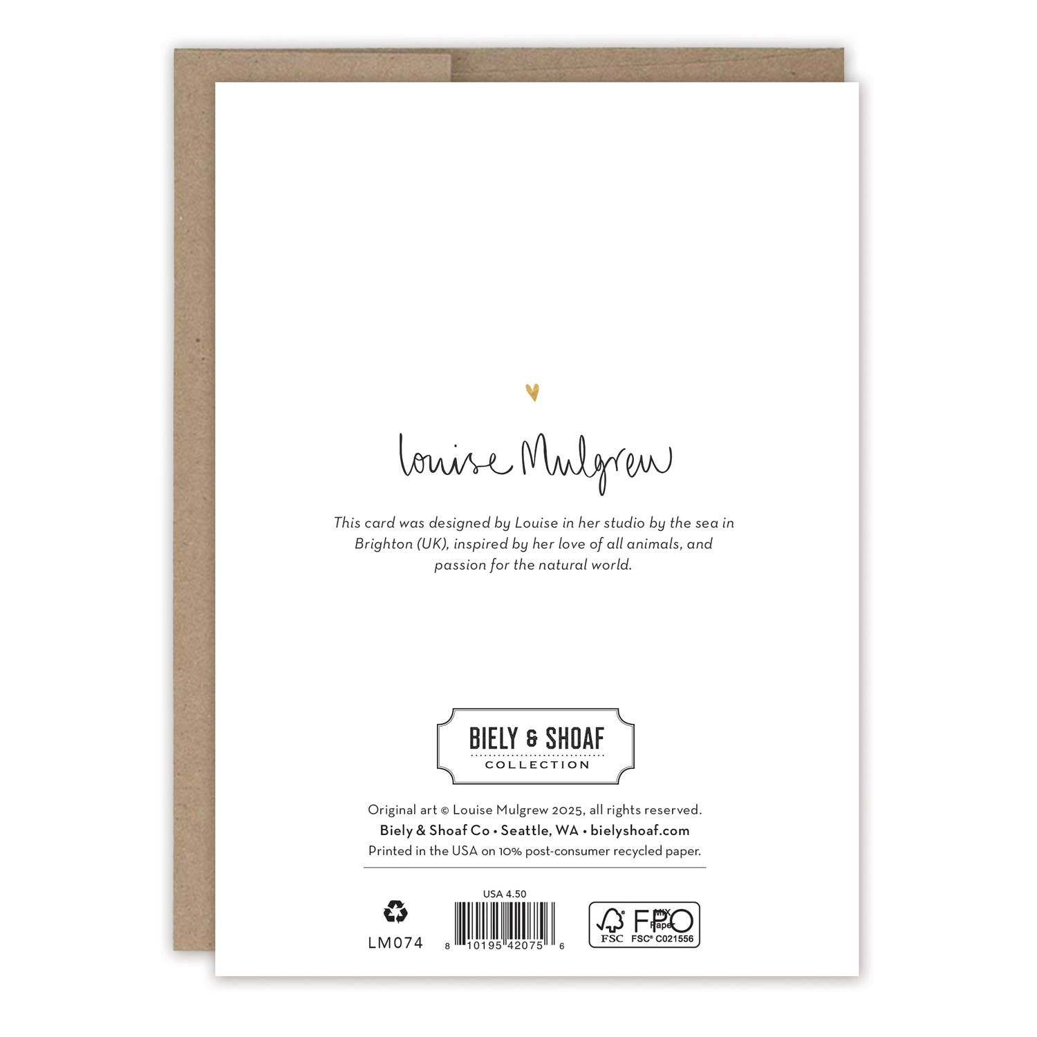 Inside verse: Wishing you many more wonderful years ahead. Happy Anniversary • Gold foil details • Illustrated by Louise Mulgrew