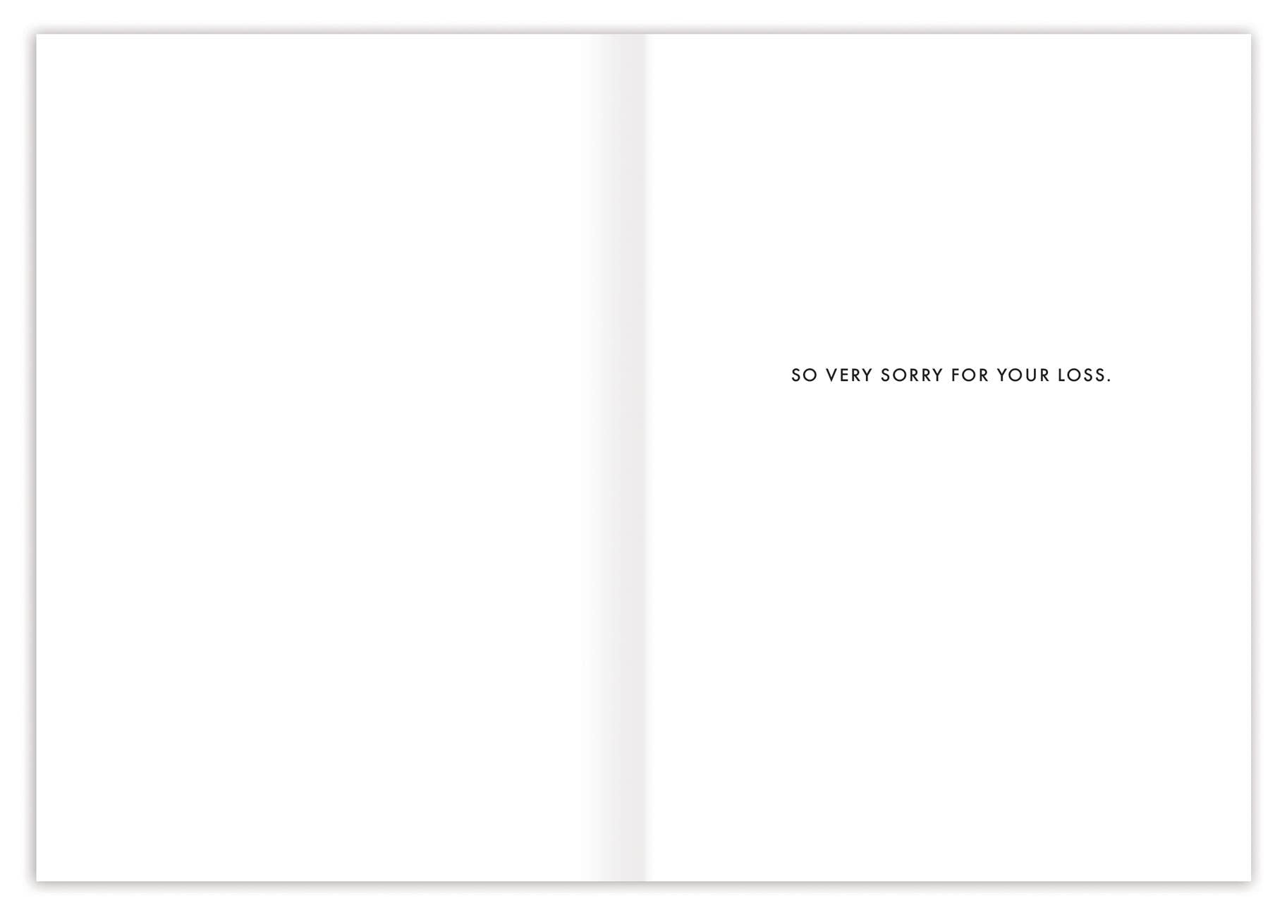 Inside verse: So very sorry for your loss. • Size: A6, 4.6" x 6.4" • Treatment: Gold foil • Illustrated by Sarah Forster