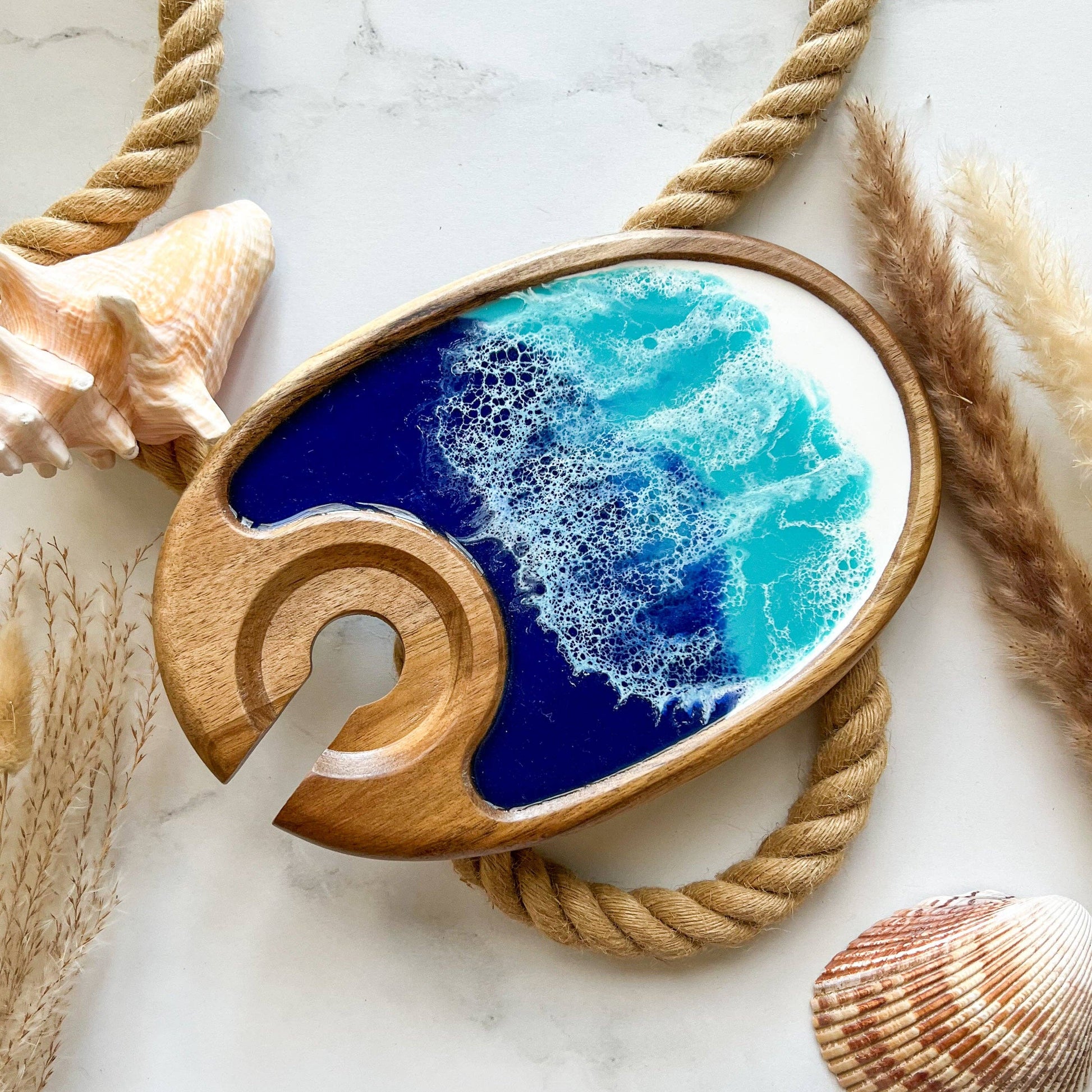 Citrus Waves Art - Personal Charcuterie Board with Wine Glass Holder