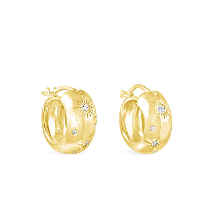 The Universe is yours! Set your intentions and manifest your dreams when you wear the Cosmos Collection by Model, Actress and Television Host, Camille Kostek and Dune Jewelry. These gorgeous hoop earrings feature dreamy cultured diamonds in a celestial dance set in 14k gold vermeil.