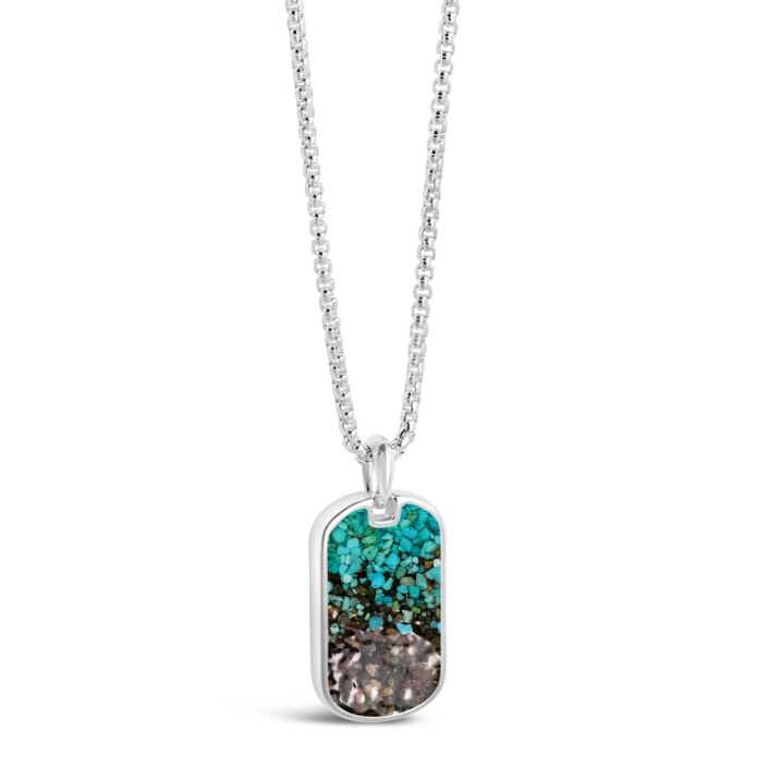 Men's Sterling Travel Tag Necklace - Turquoise Gradient & Fenway Engraved