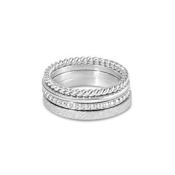 When you can't have just one! This ring set features four stackable rings with different textures and design. Water, heat, & tarnish proof. Versitale in both style and design.