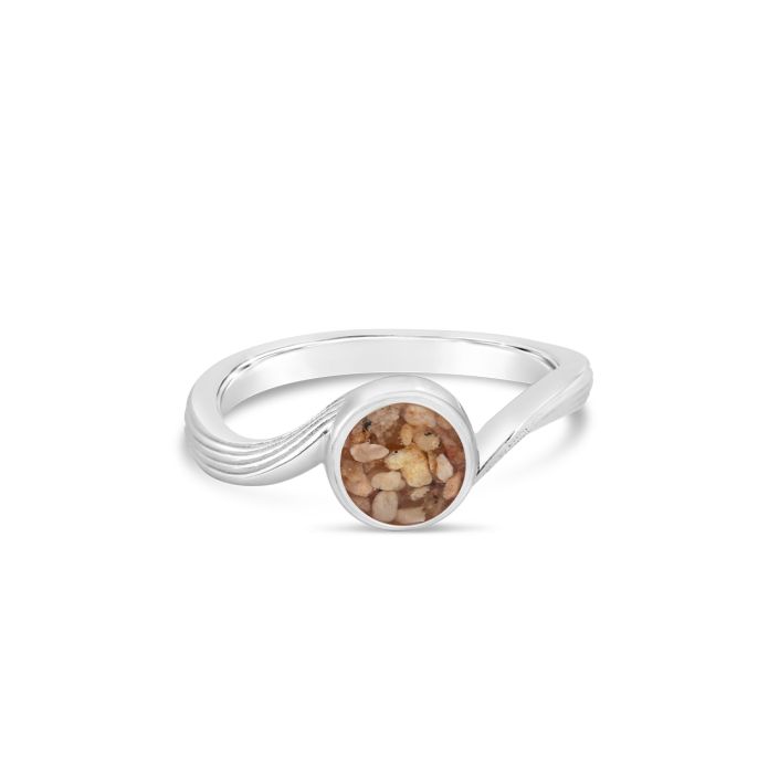 The motion of the ocean is captured perfectly in this simple sterling silver Ring. Ripples of the ocean waves circle the round setting in serene and calming lines on a beautiful sterling beaded chain.