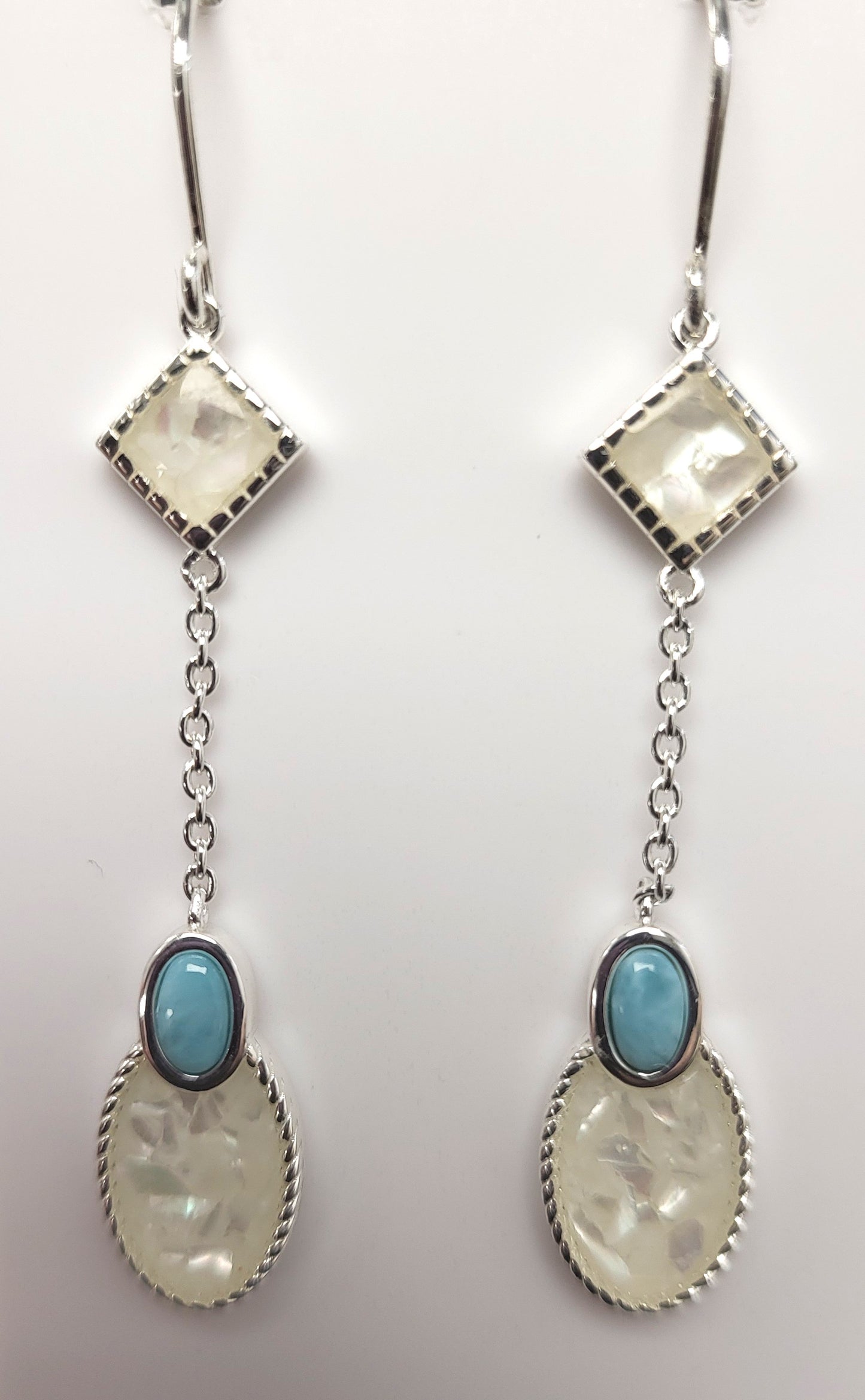Twin Oval Drop Earrings - Larimar and Mother of Pearl